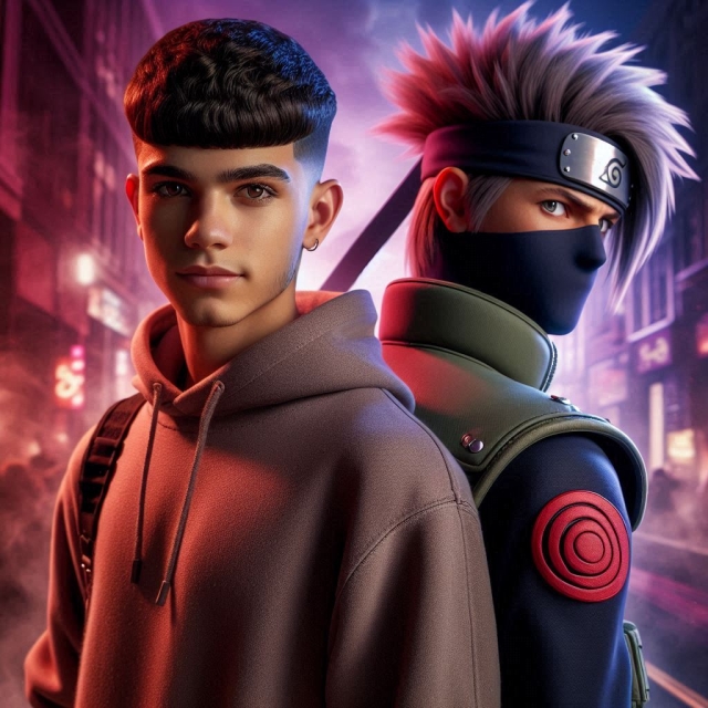 هل أنت مستعد لتجربة مثيرة وممتعة؟ جرّب الآن تقنية تبديل الوجه بالذكاء الاصطناعي مع صورتك وصورة الشاب المصري صاحب الابتسامة الهادئة وكاكاشي النينجا في أجواء سينمائية مذهلة مليئة بالألوان الديناميكية. اجعل وجهك جزءًا من هذه المغامرة المدهشة، وشارك الصورة الجديدة مع أصدقائك على الواتساب والفيسبوك والإنستجرام. ستندهش من النتيجة وتضيف لمسة من المرح إلى يومك!