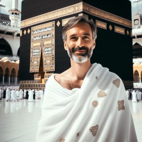 على موقع tfotos.com، يمكنك الآن تبادل الوجوه مع هذه الصورة التي يظهر فيها حاج كبير السن بابتسامة واثقة أثناء ارتداء…